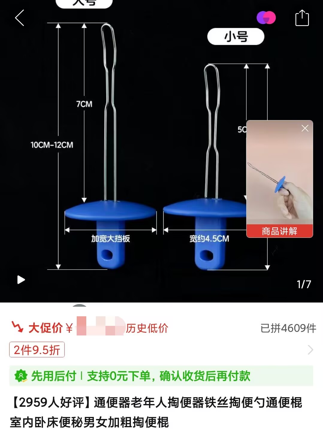 为了能顺利排便,我网购了一些神器(相关图片会贴在下面)。有了这些神器的帮助,排便时的疼痛减轻了不少,也能让我更顺利地完成排便。不过我还是想提醒大家,如果不是像我一样有严重的便秘情况,尽量不要使用这种东西。毕竟我是癌症患者,用这种工具来帮助排便也是没有办法的办法。在有可能的情况下,我还是希望排便这件事能由自己独立完成。而且我老公全职工作为我赚取医疗费,没办法时时陪在我身边帮我处理排便的事,我也想给自己留些尊严,不想让他来做帮我排便这样的事。